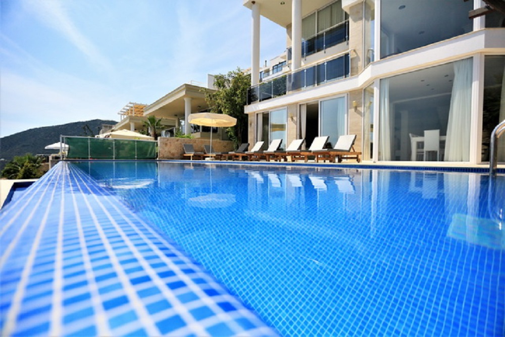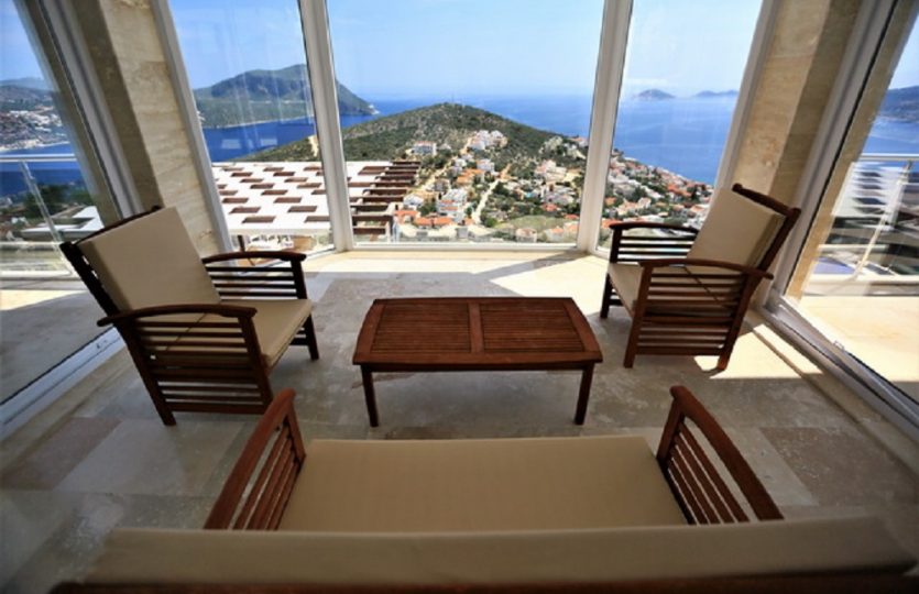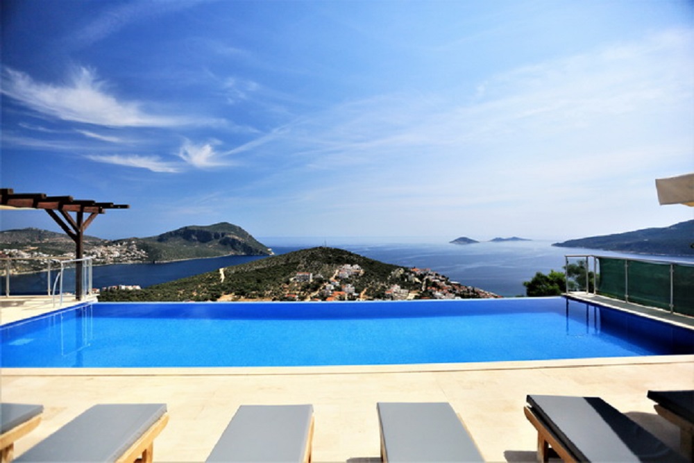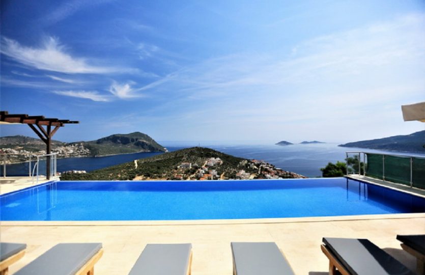 - The property provides a spectacular, private infinity pool, sunbathing terraces and panoramic views of Kalkan Bay.