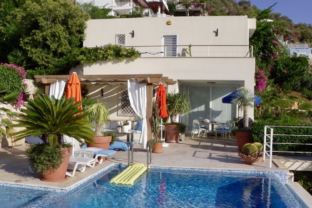 - This contemporary villa with an added apartment unit has five bedrooms in total. It is ideally located right above, only 5-min walk to Kalkan’s old town, and just 10-min distance to its harbor and beach.
